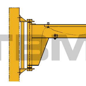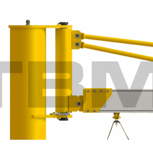 | Trục quay của cần trục quay 270° được đặt trên hai vấu phía trên cột. Vòng bi hỗ trợ mặt phẳng và ống lót bằng đồng tự bôi trơn được lắp đặt giữa các vấu trên và dưới và trục quay. Điều này đảm bảo khả năng quay linh hoạt và làm giảm chuyển động quán tính của cần trục khi nó dừng lại. Giới hạn góc quay bên ngoài được cung cấp để điều chỉnh góc quay của cần trục. |