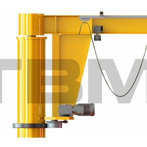| Trục xoay của cần trục 360° được đặt trực tiếp trên ống tròn của cần trục đúc hẫng, đồng tâm với cột. Nguồn điện được cung cấp thông qua vòng thu 360°, cho phép xoay 360 độ không giới hạn. Chế độ xoay 360° theo mặc định là điện. |