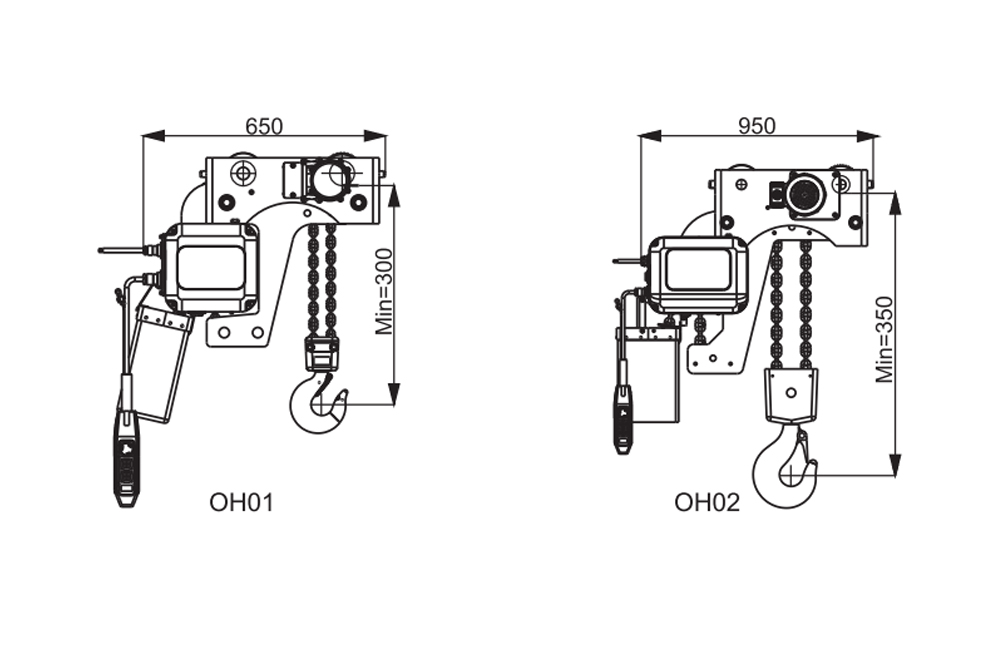 | Lưu ý: Loại ZH01/02 phù hợp với dầm chữ I 125-178, xe điện chạy với tốc độ 20m/phút. Nó cũng có thể được sử dụng với KBK. | ||||||